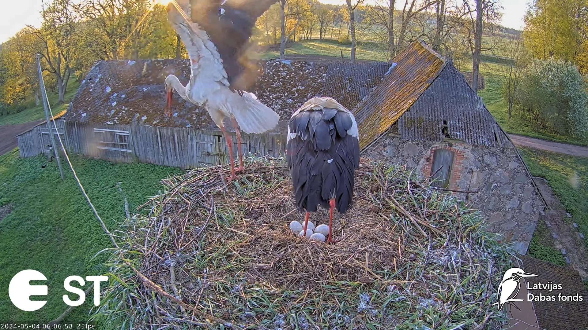 Baltie stārķi (Ciconia ciconia) Tukuma novadā - LDF tiešraide __ White storks in Tukums, Latvia 9-36