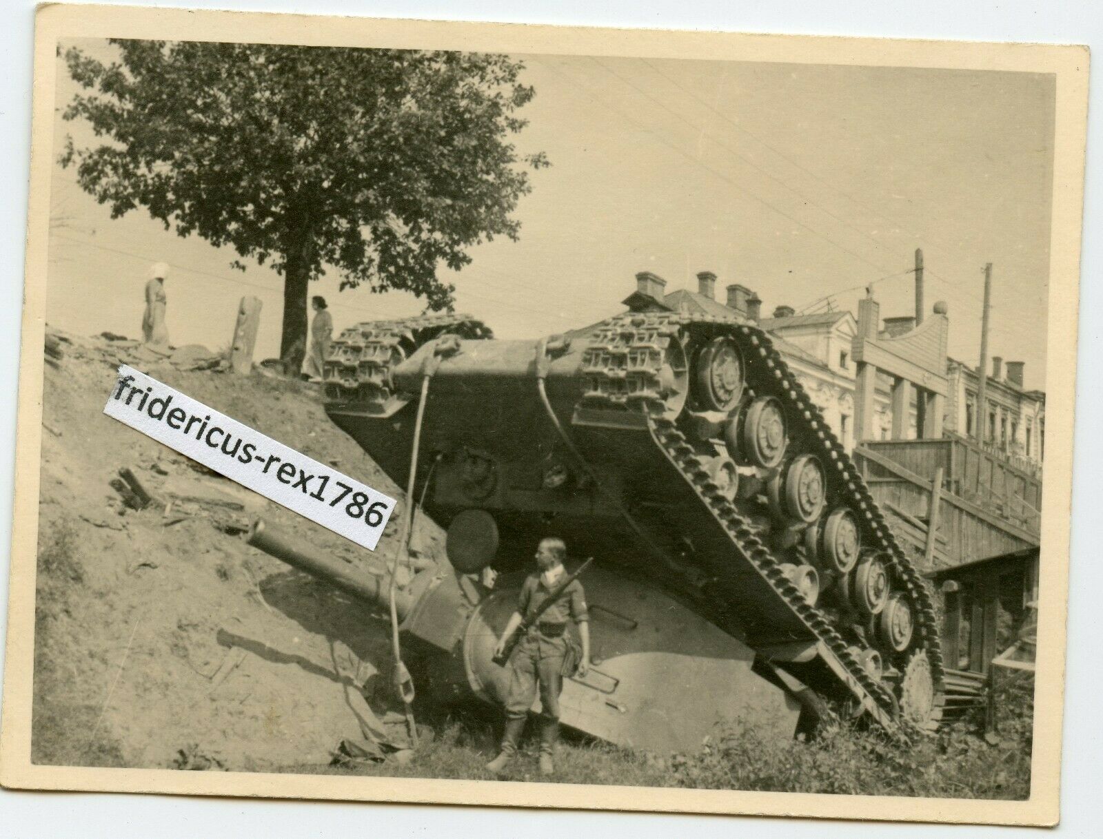 Foto Ostfront sowjetischer Panzer Tank KW-2 КВ-2 liegt auf den Kopf HKL