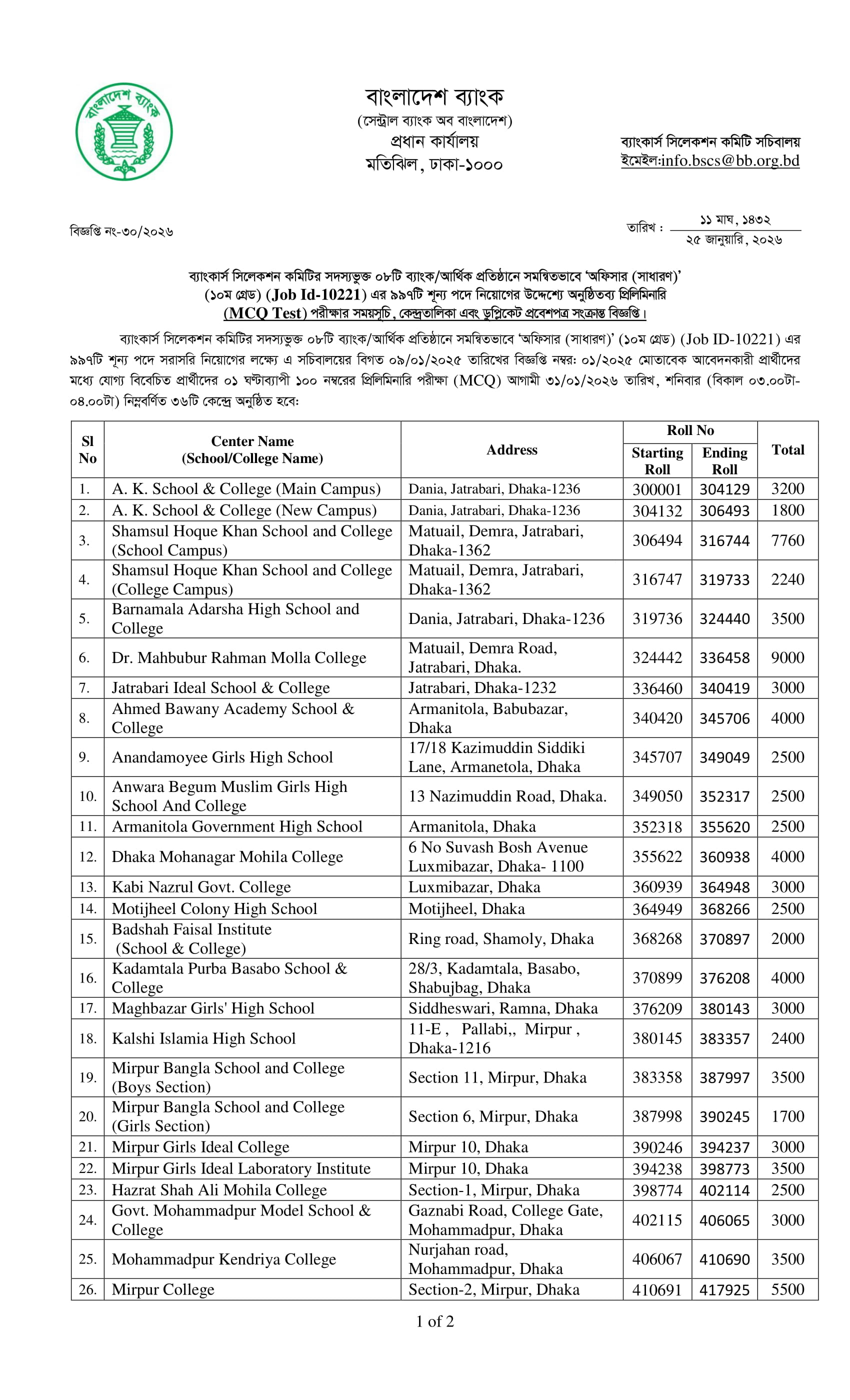 Combined 8 Bank Officer (General) MCQ Exam Seat Plan 2026 PDF 1