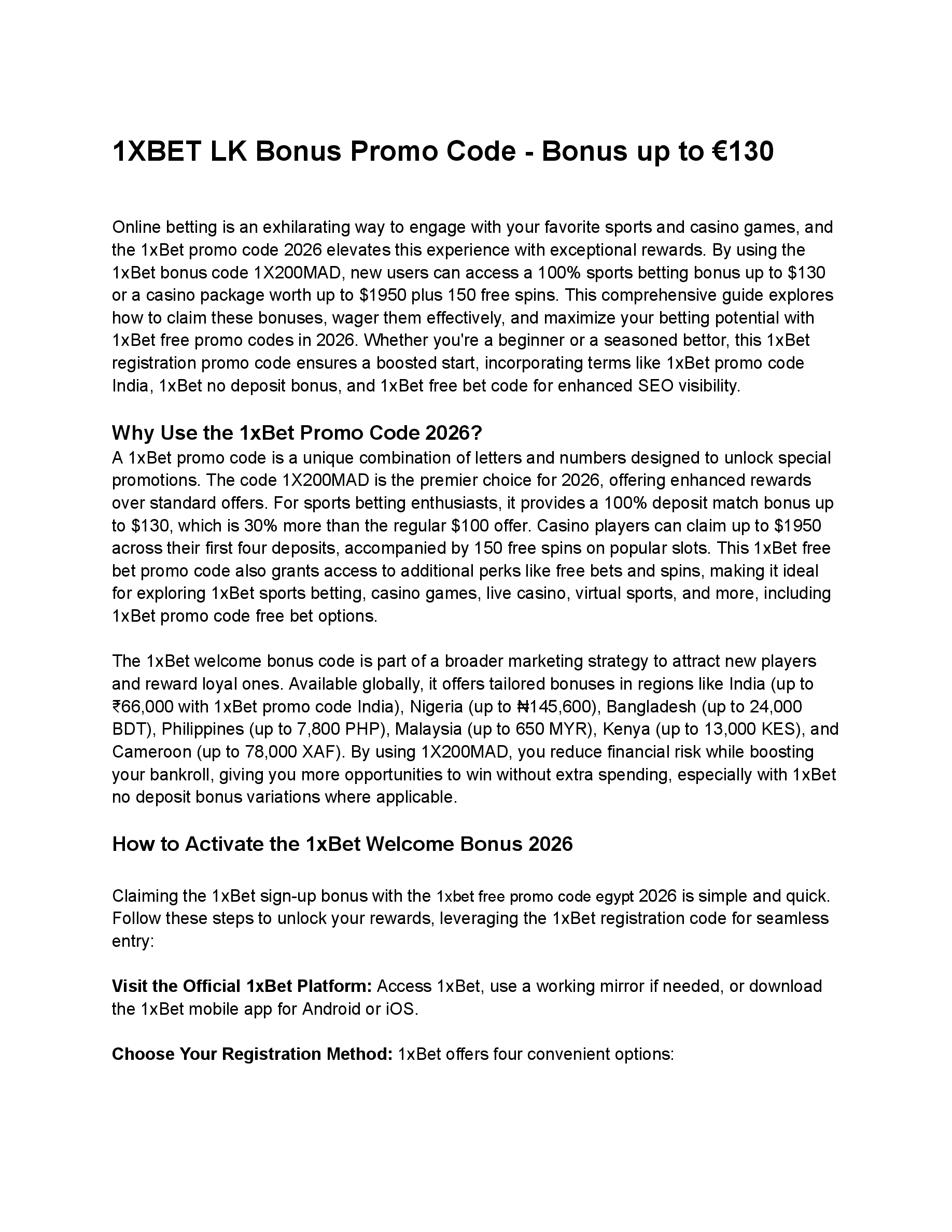 1XBET LK Bonus Promo Code - Bonus up to €130
