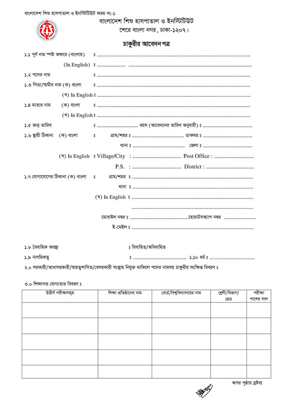BSHI Job Application Form 2025 PDF-1