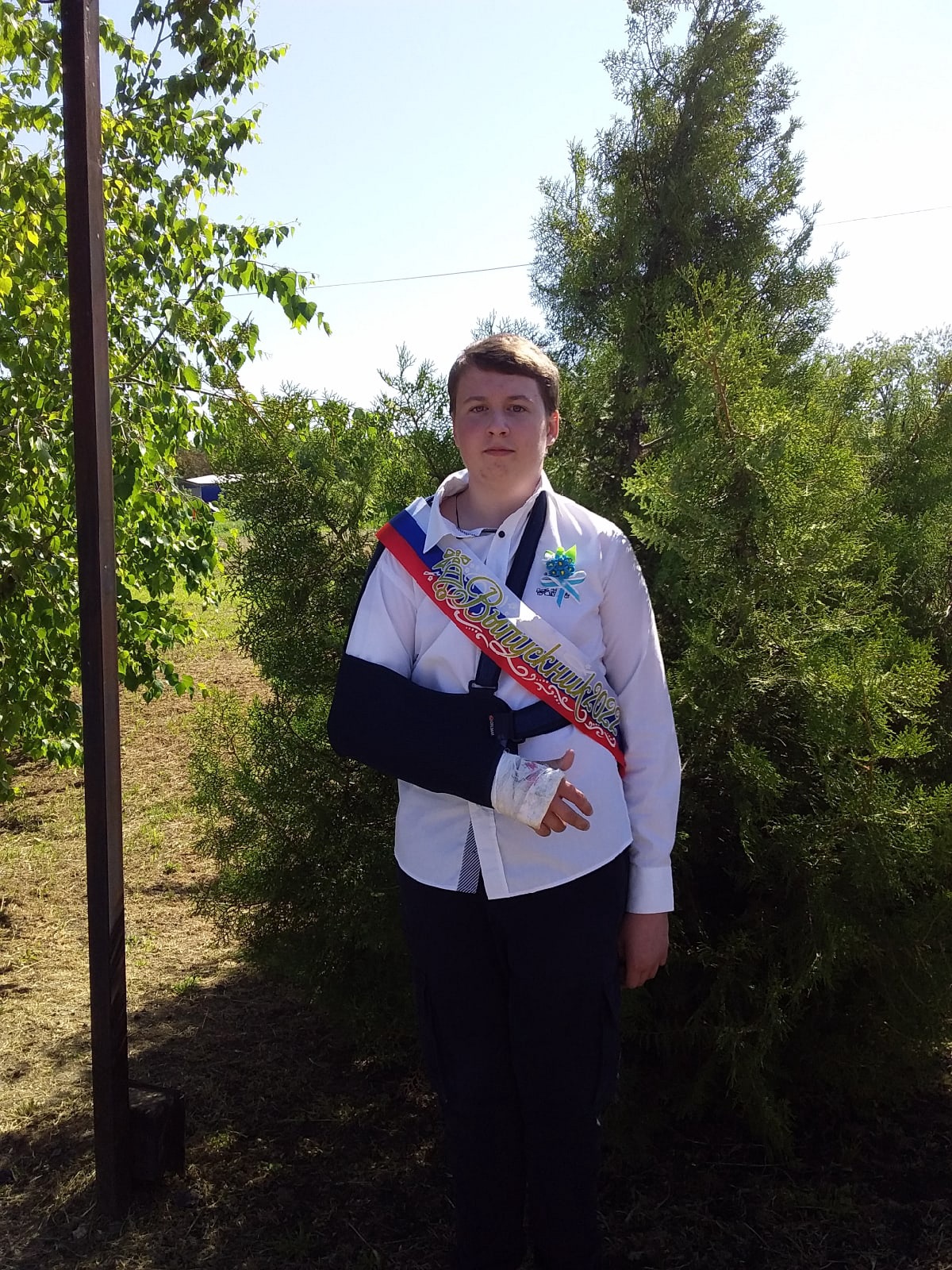 выпускник с рукой