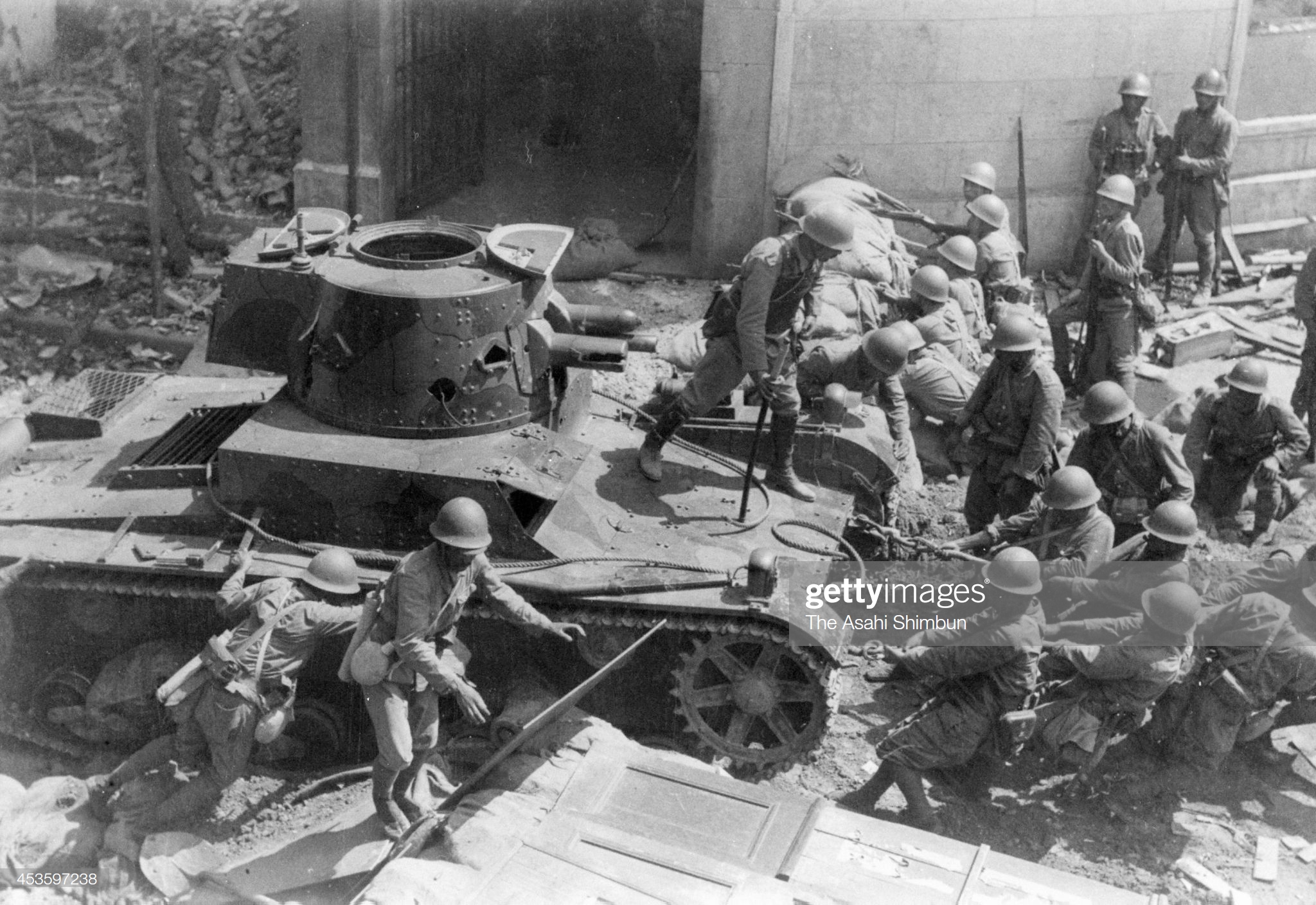 Морпехи Императорского флота Японии эвакуируют в тыл своих позиц
