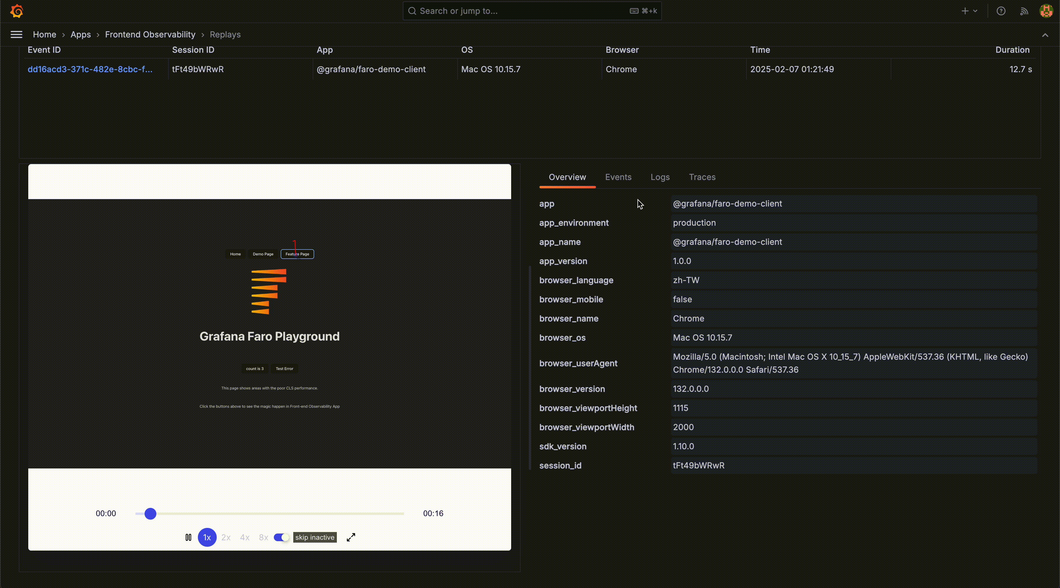 Grafana Faro Replay Demo - edited