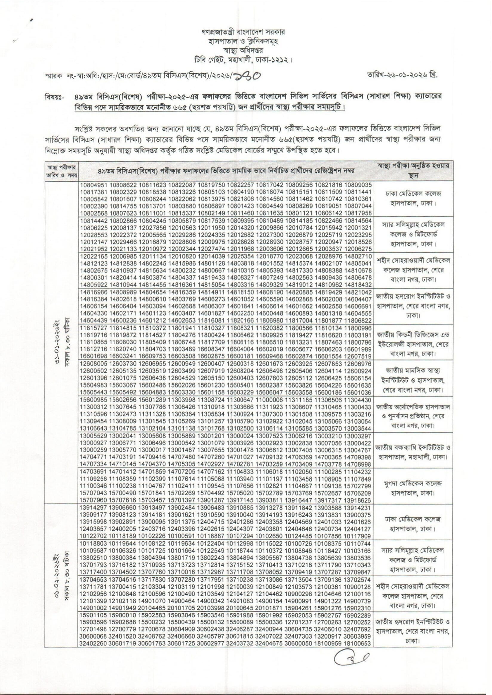 49th BCS Health Test Date 2026 PDF 1