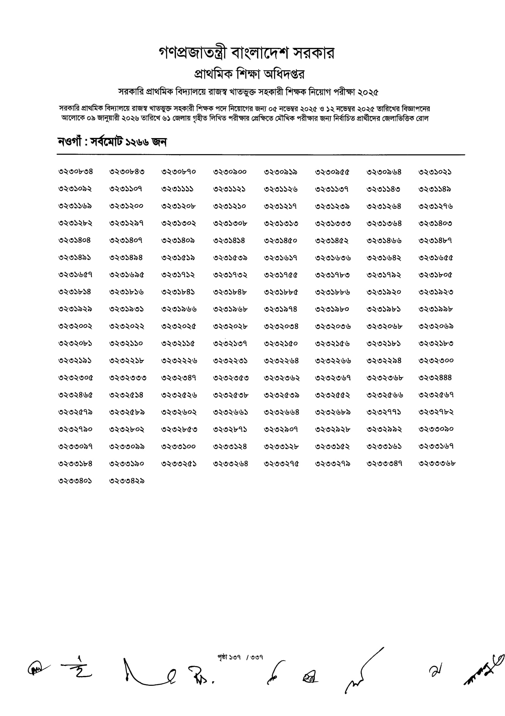 Primary MCQ Exam Result 2026 PDF 139