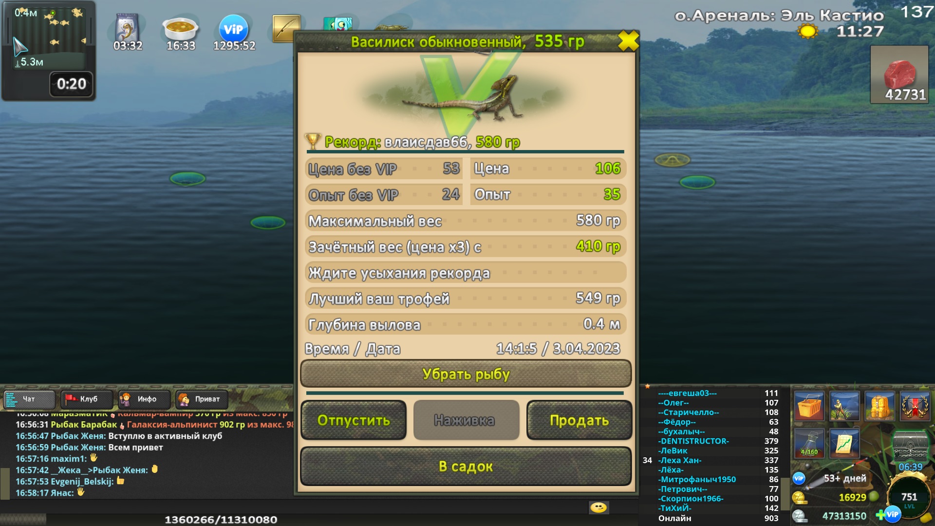 Василиск обыкновенный на мясо без прилова зачёт