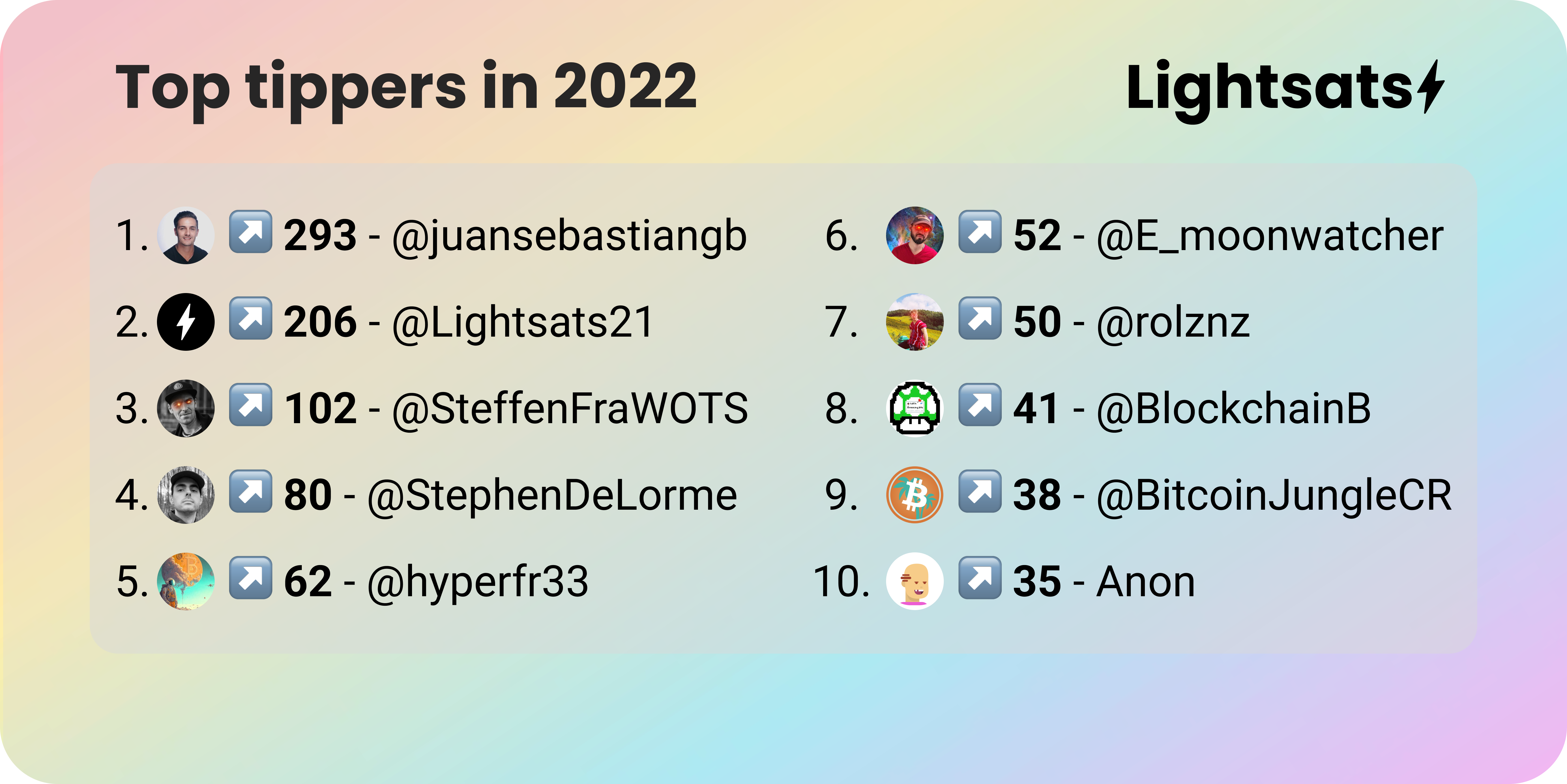Top Tippers Lightsats 2022