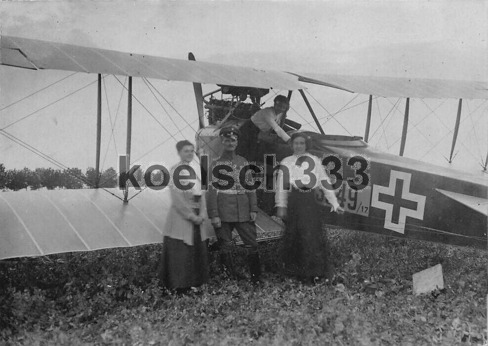 Foto Flugzeugführer mit Frauen vor deutschem Doppeldecker Flugzeug in Posen