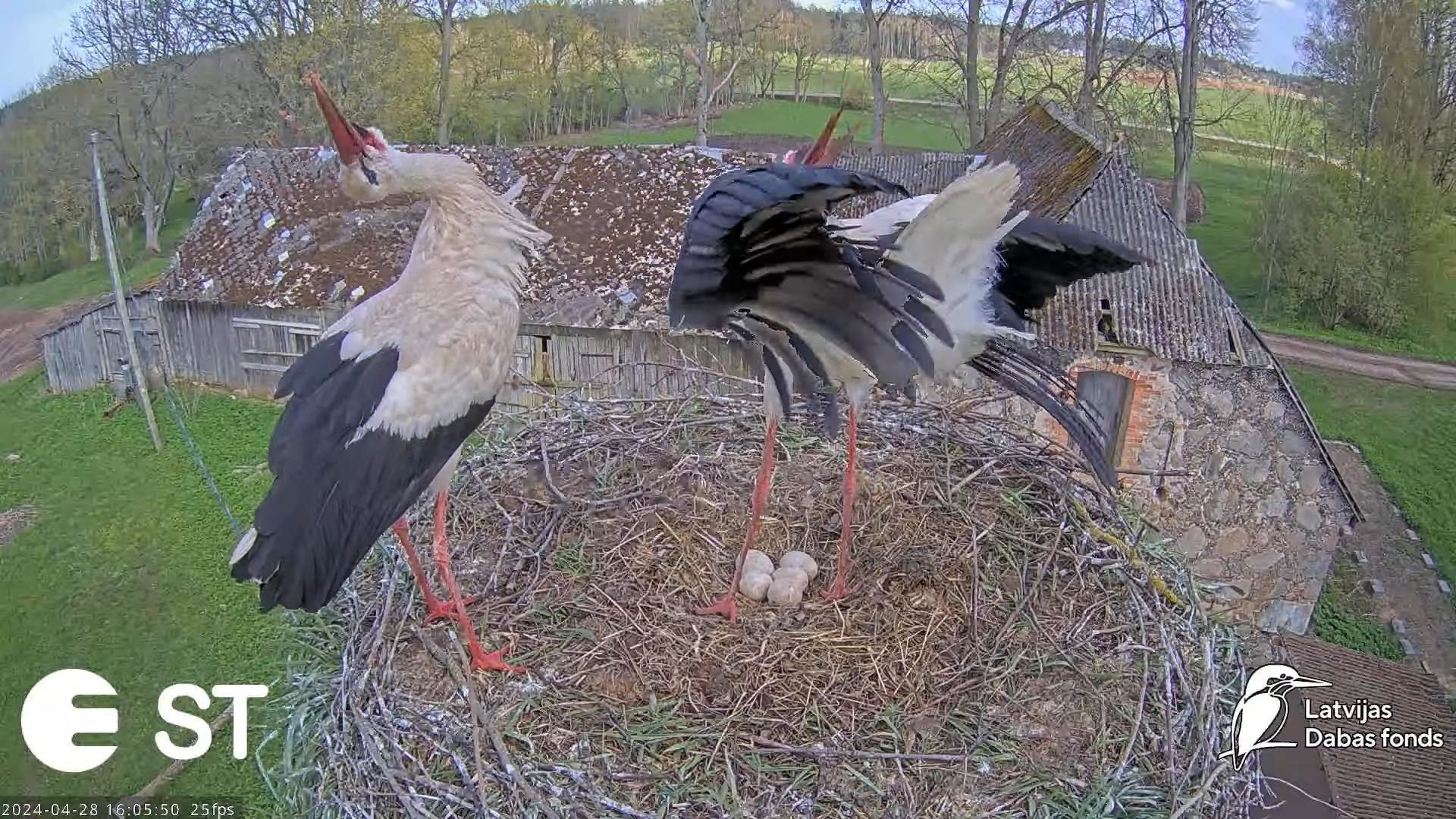 Baltie stārķi (Ciconia ciconia) Tukuma novadā - LDF tiešraide __ White storks in Tukums, Latvia 7-34