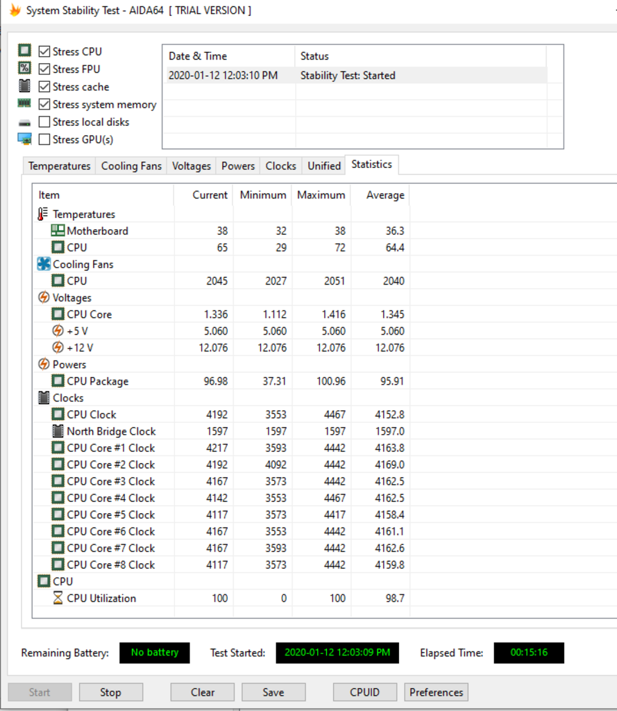 Aida64 Stability test 15 min