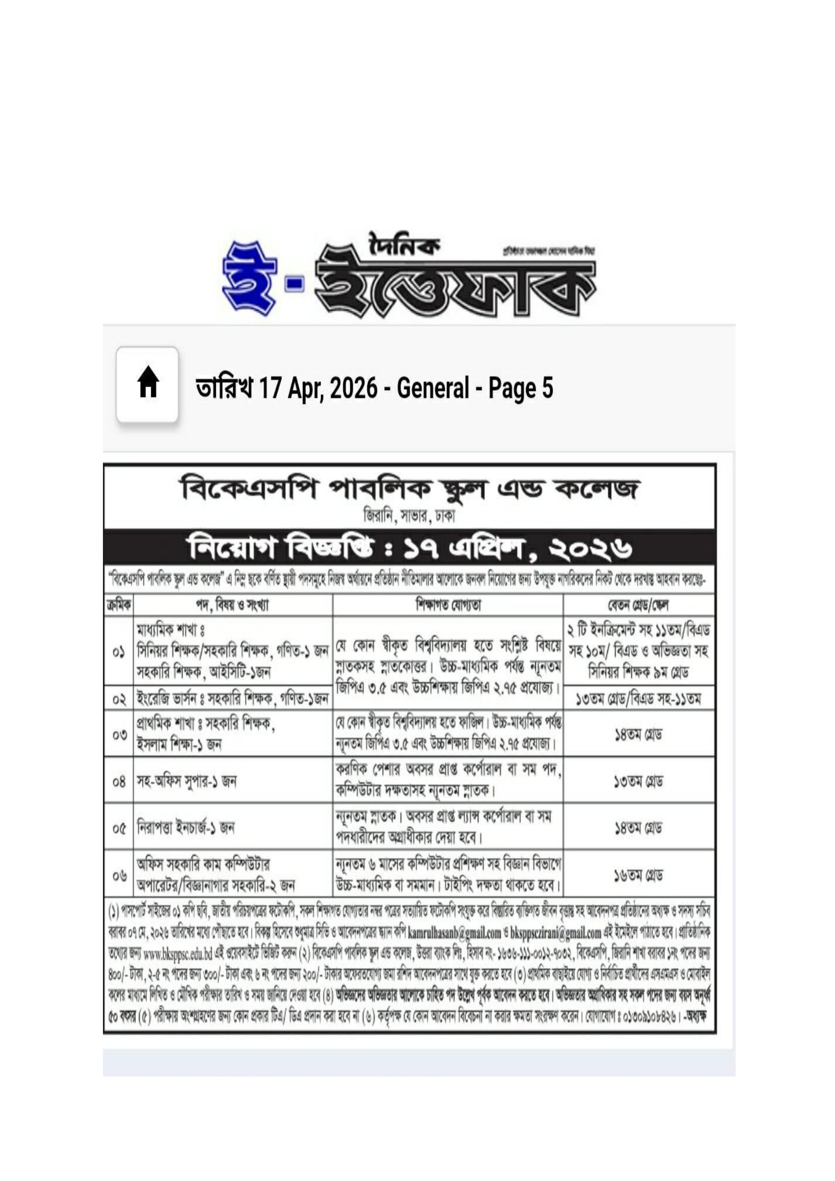 BKSP Public School and College Job Circular 2026 PDF 1
