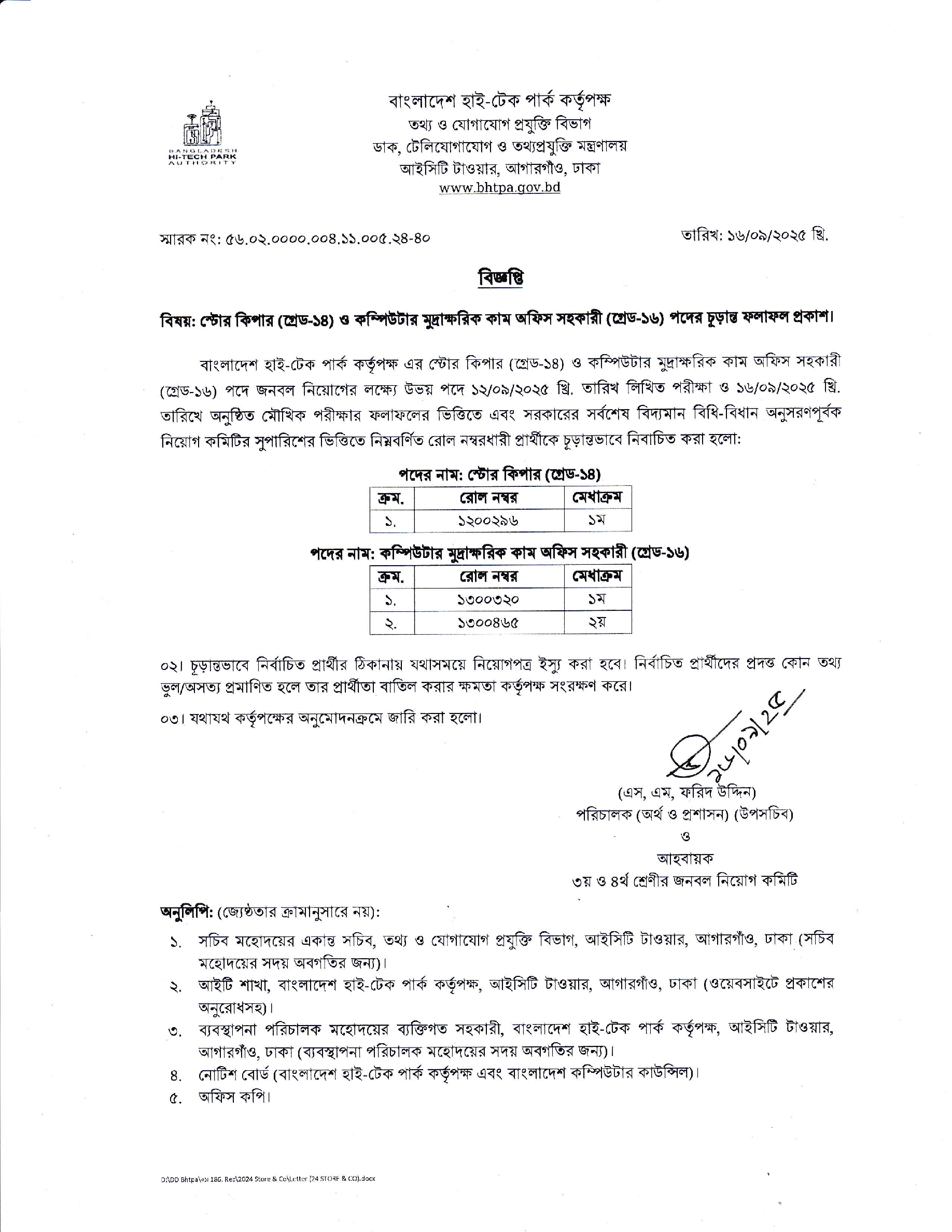 BHTPA Final Result PDF