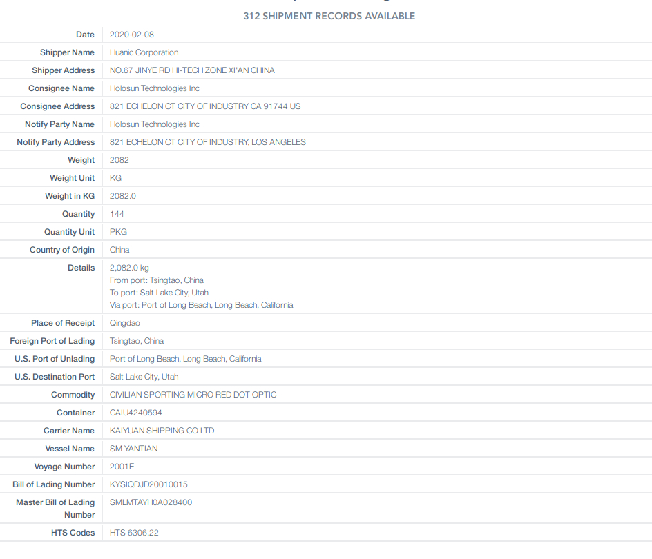 shipment record