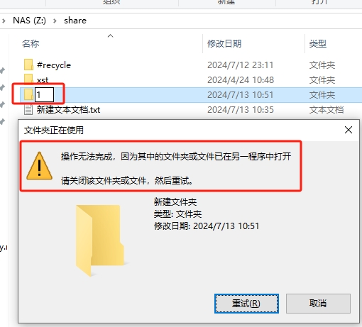文件夹重命名出错
