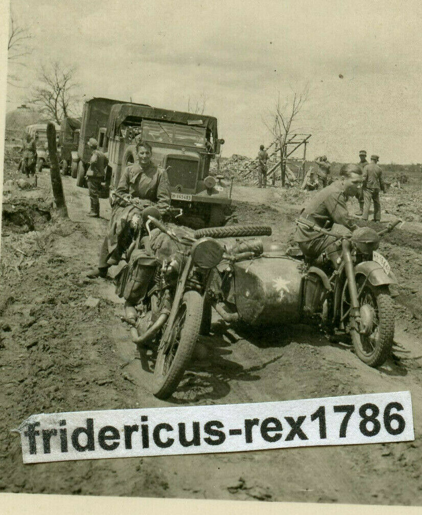 Foto Kommando 1 Gebirgs Div. Krad mit Beiwagen Kennung Edelweiß Ostfront Kolonne