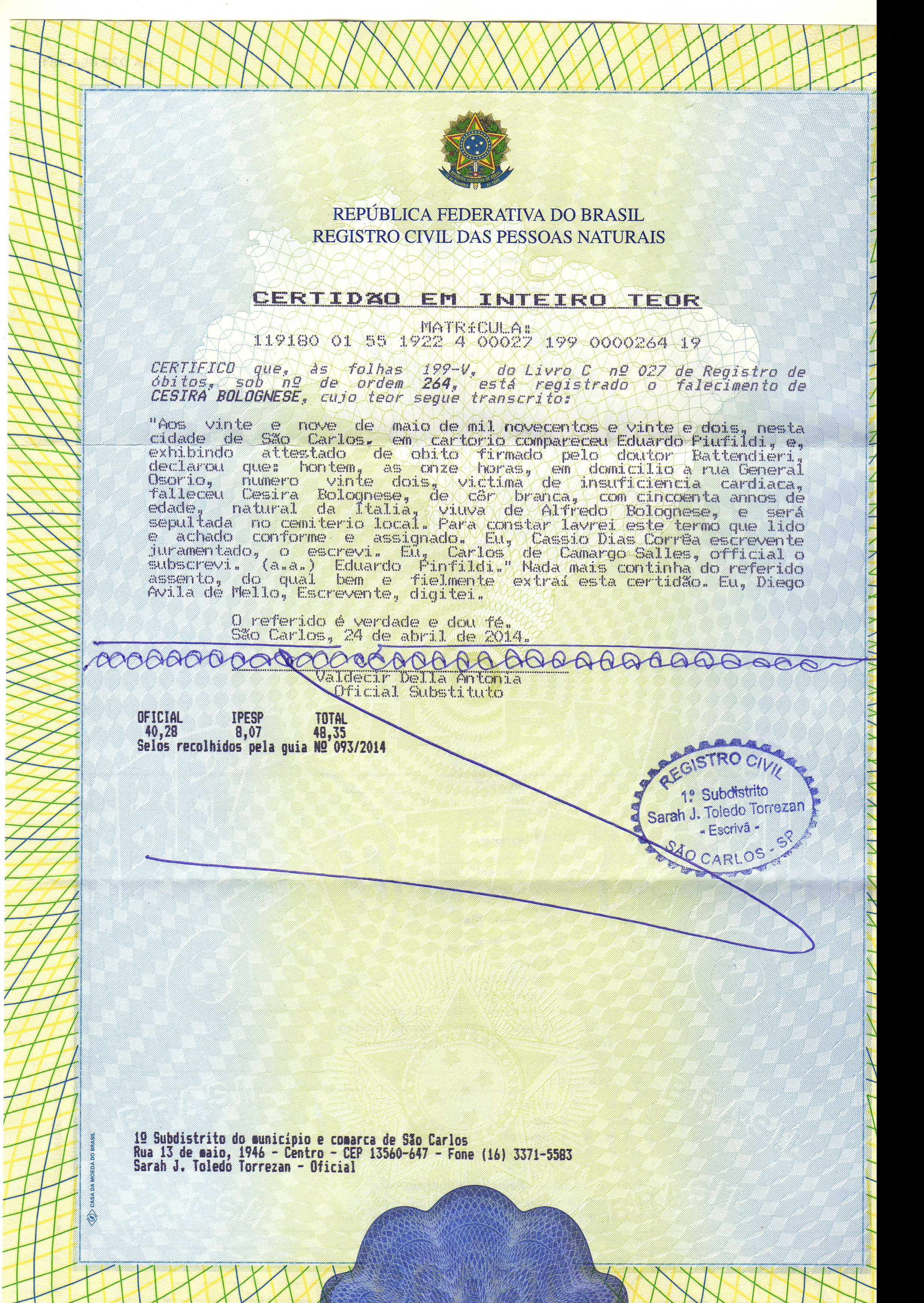 Antenato Italiano Avô José Bolognesi CObito Cesira CObito Cesira