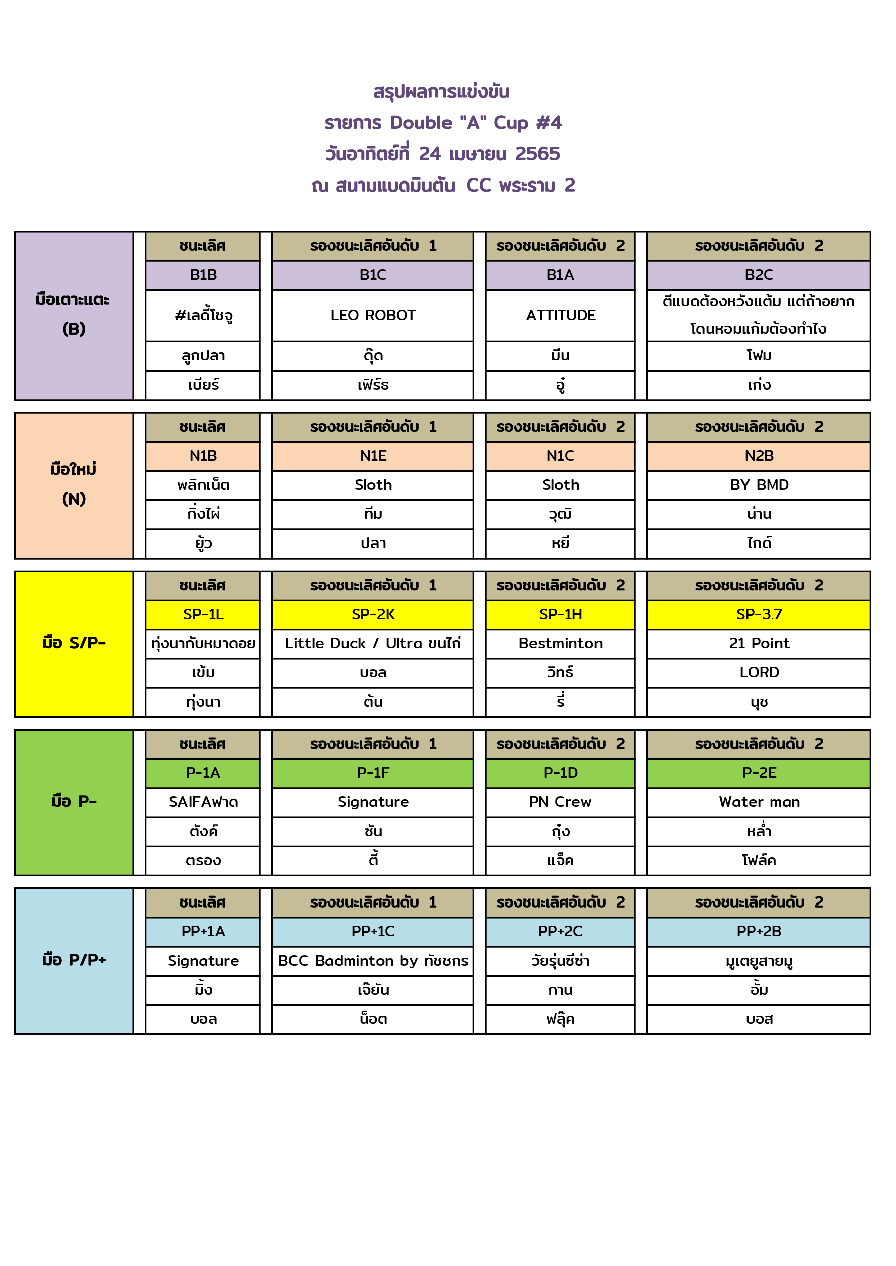 ผลการแข่งขัน Double A Cup 4