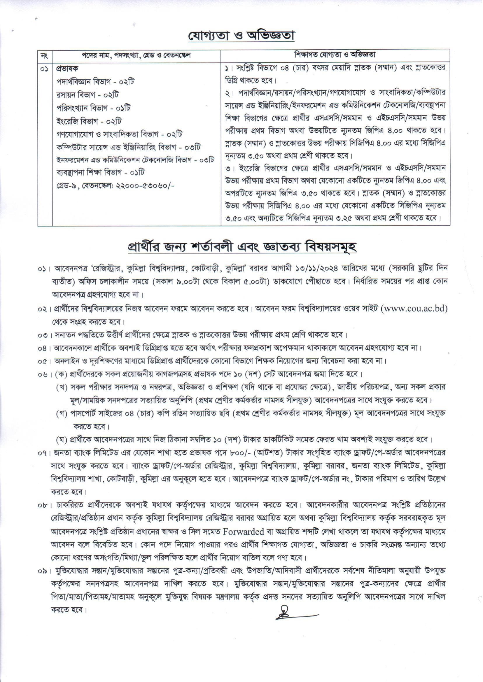 Comilla University (COU) Job Circular 2024 PDF-2