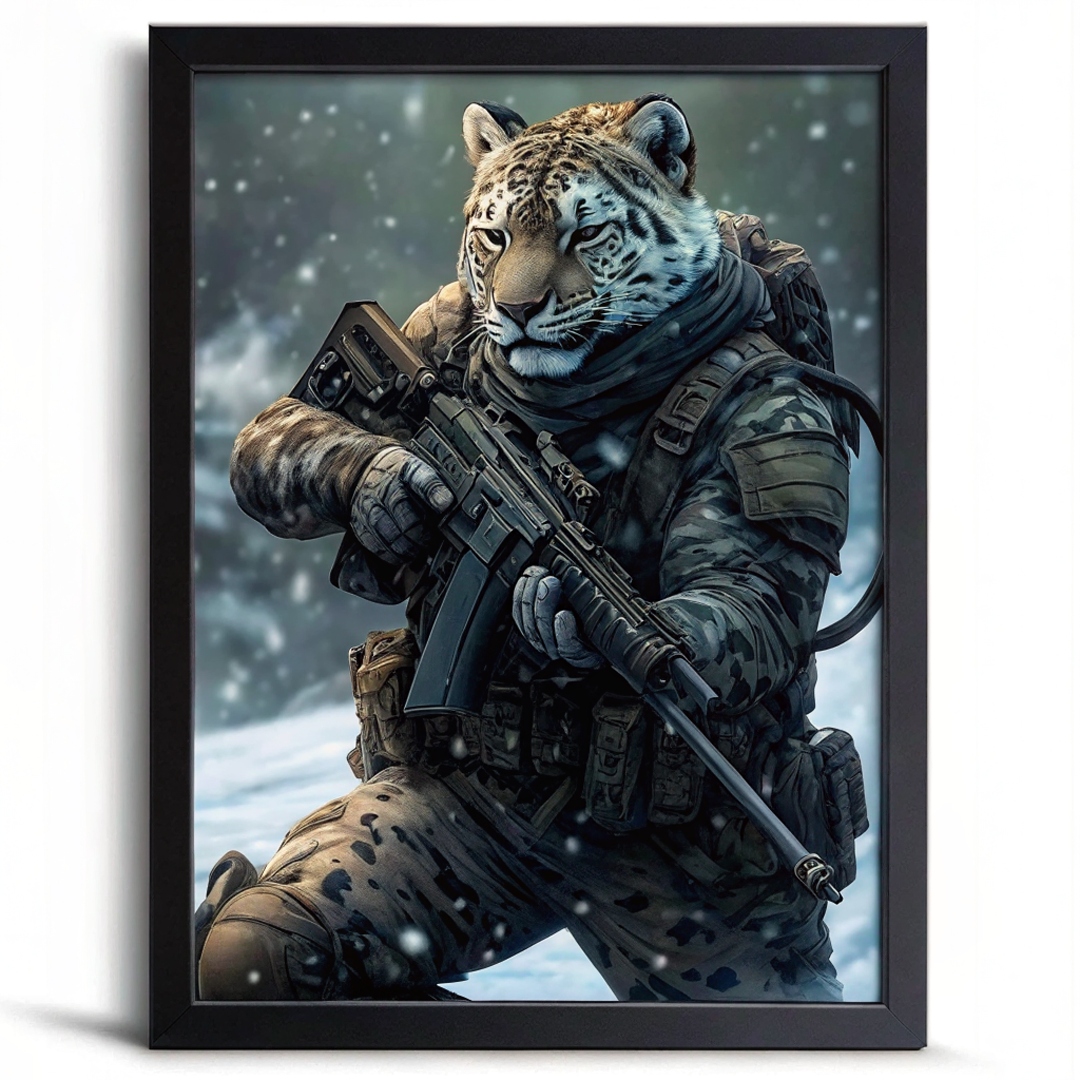 Snow Leopard Soldier Wall Art Print Animal Artwork Print Big Cat Snow Leopard