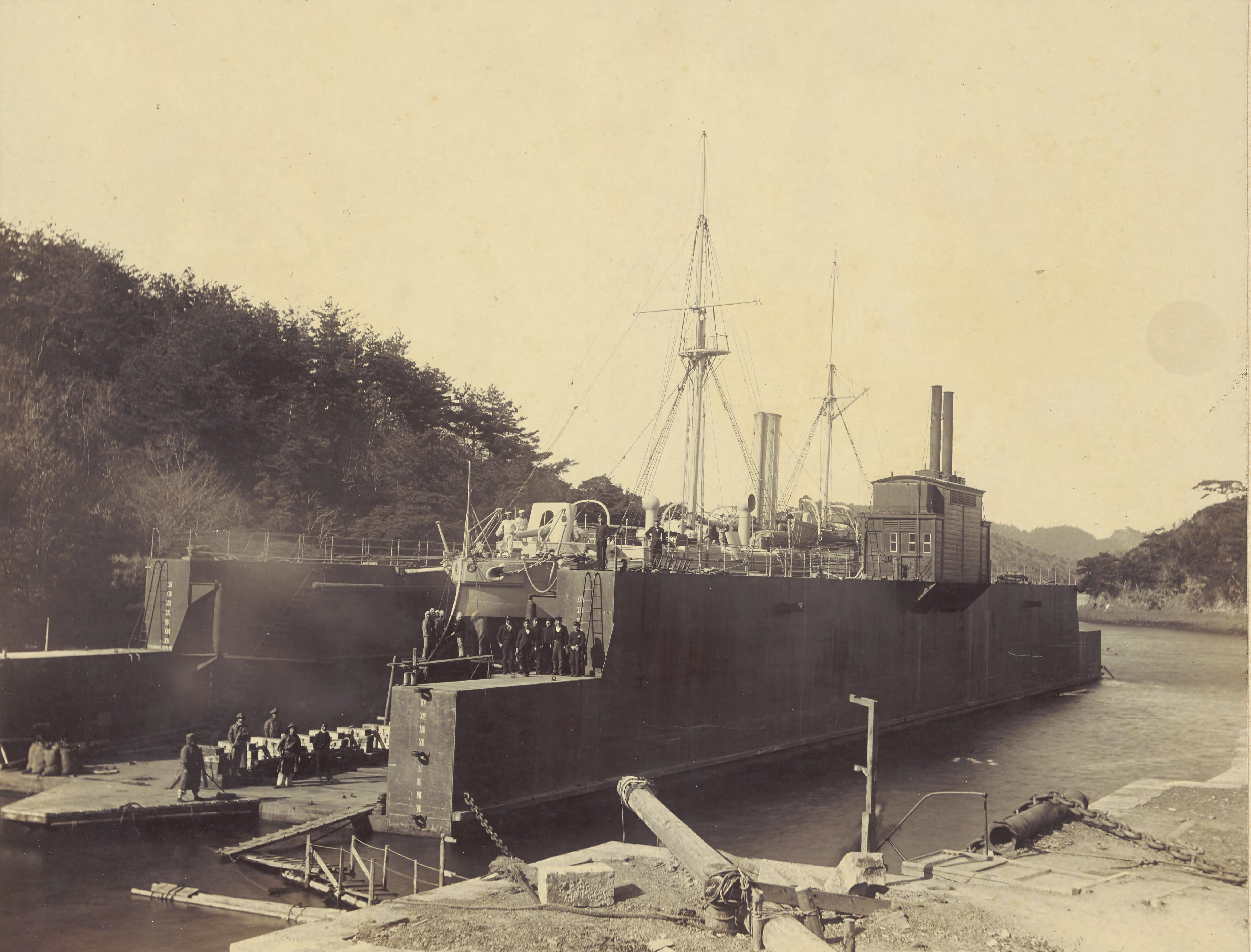 Вид на причал военного корабля Майя