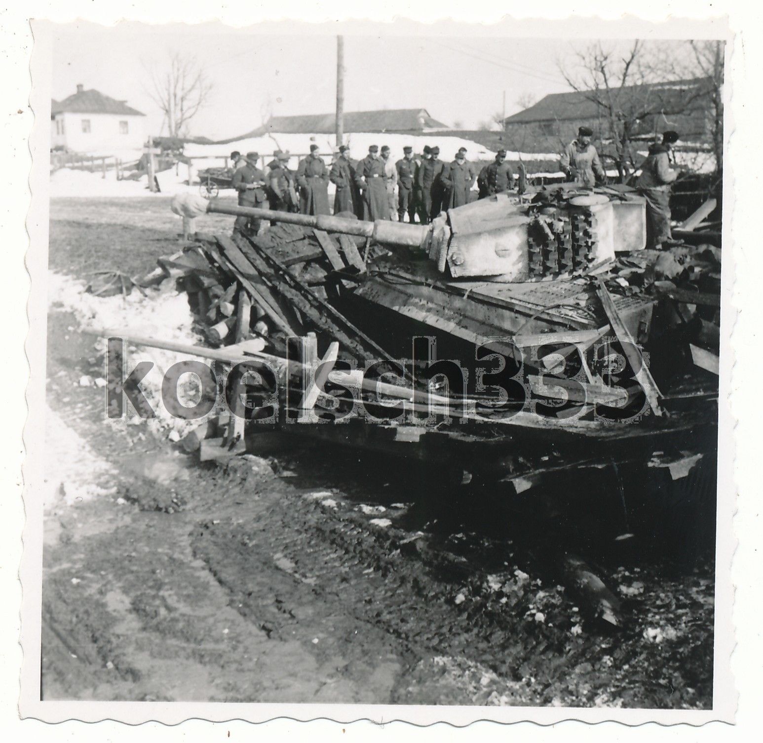Foto schwere Panzer Abt. 503 Tiger auf Brücke eingebrochen ! Kom