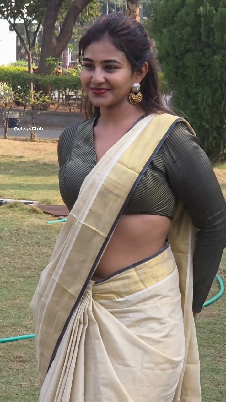 sexy telugu girl deep navel in cream saree mp4 snapshot 00 20 000