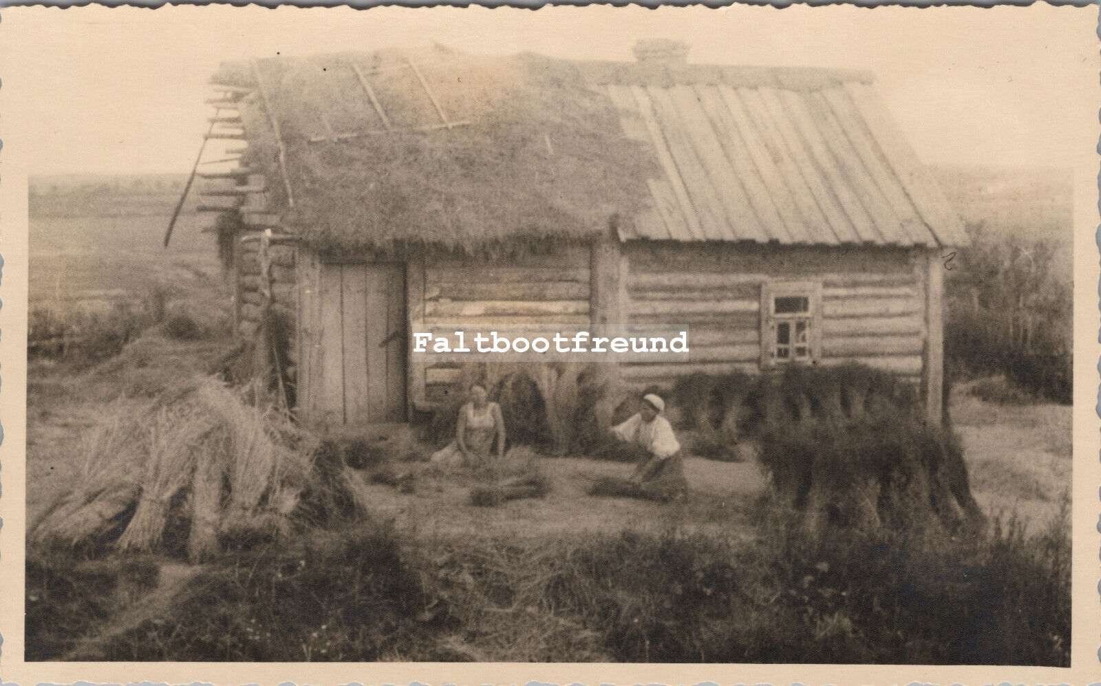 Foto Fallschirmjäger Russinnen beim Stroh binden Ostfront 1943
