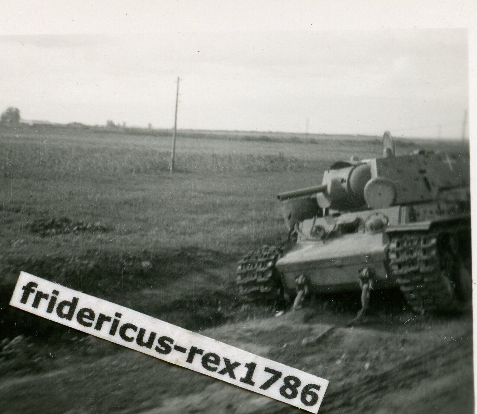 Foto Ostfront Pz. Jäger Abt. 1 Pz. Div. Beute Panzer KW-1 Kennung Balkenkreu