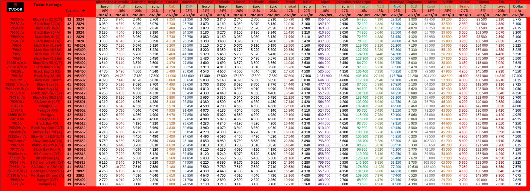 tudor prices January 2023