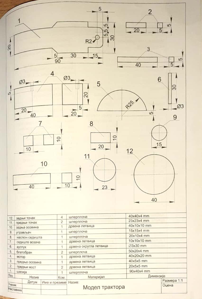 Технички цртеж трактор