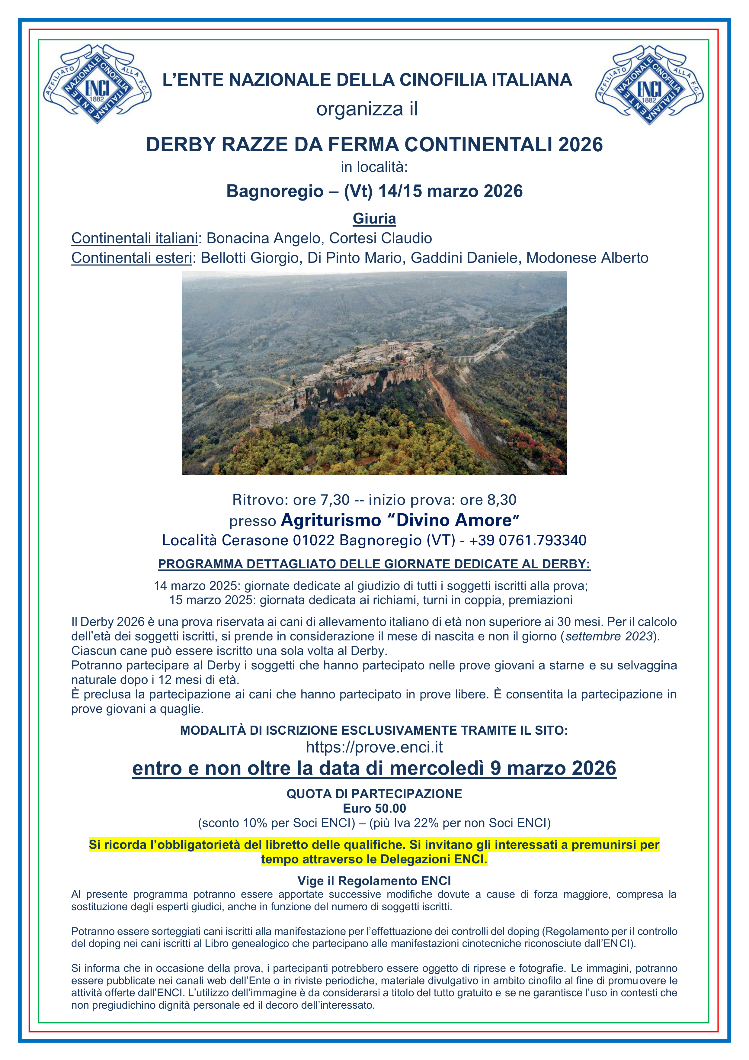 PROGRAMMA DERBY PER LE RAZZE DA FERMA CONTINENTALI 2026