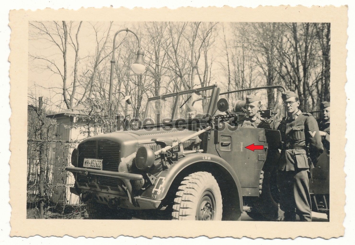 Foto schwerer Einheits PKW Funkwagen Kennung 19. Panzer Div. Funker Kübelwagen