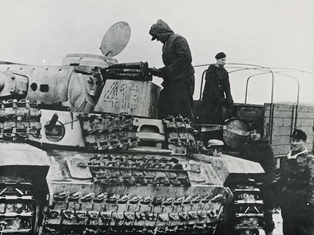Østfronten. Benzin og amunition påfyldes tysk tank.