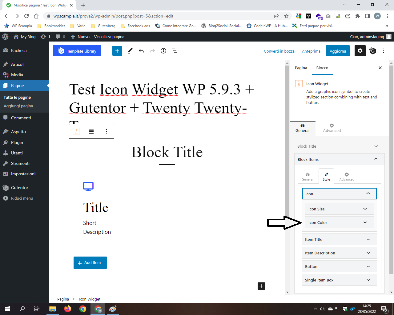 2.Test Icon Widget WP 5.9.3 Gutentor Twenty Twenty-Two - Icon Color