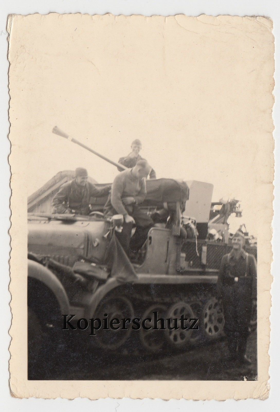 Foto Luftwaffe Halbkette mit Flak Geschütz Sd.kfz 7- Selbstfahrlafette Soldaten