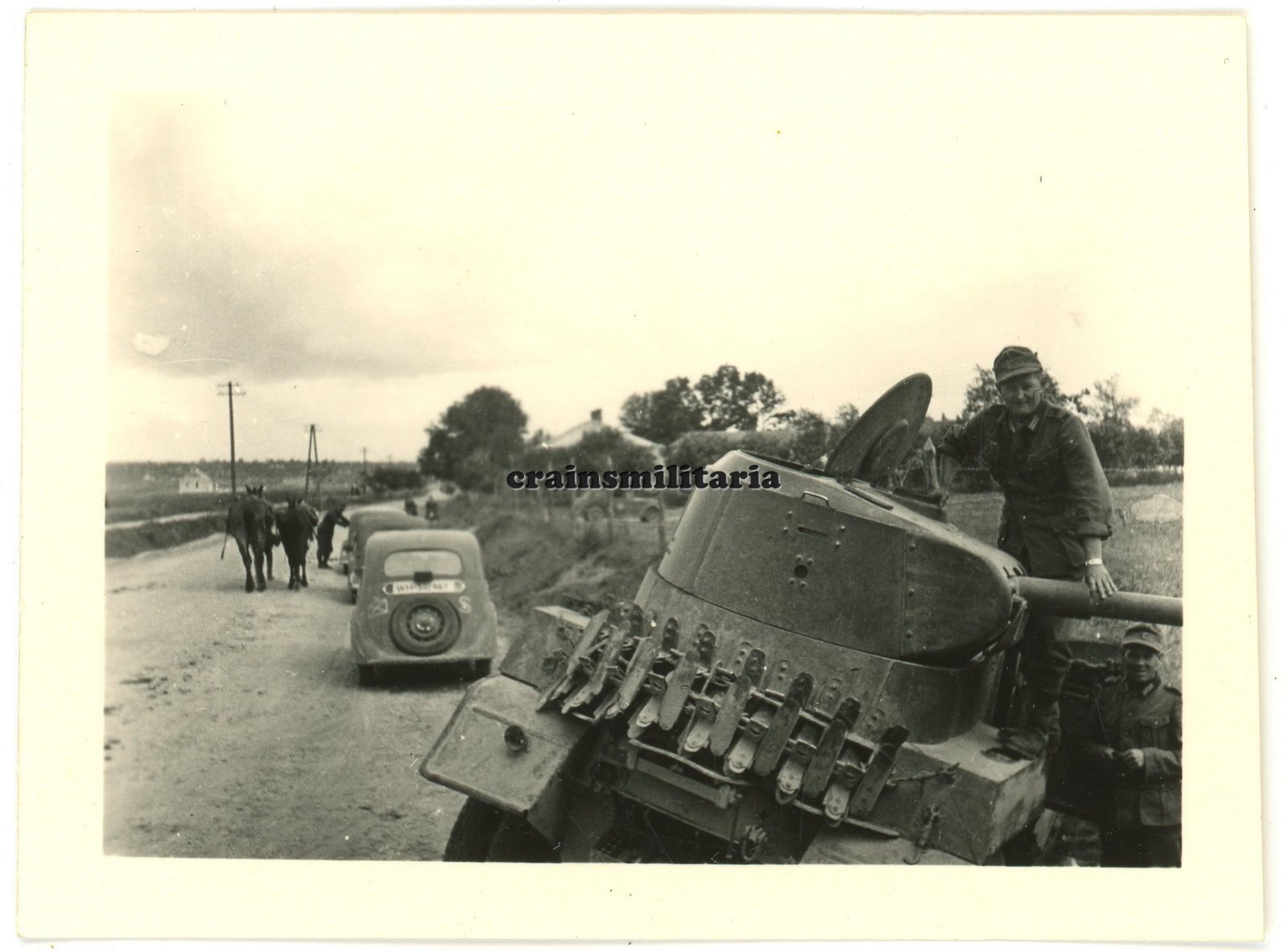 Orig. Foto Beute Pkw mit 100.ID Jäger Wappen russ. Panzer CZORTKOW Ukraine 1941