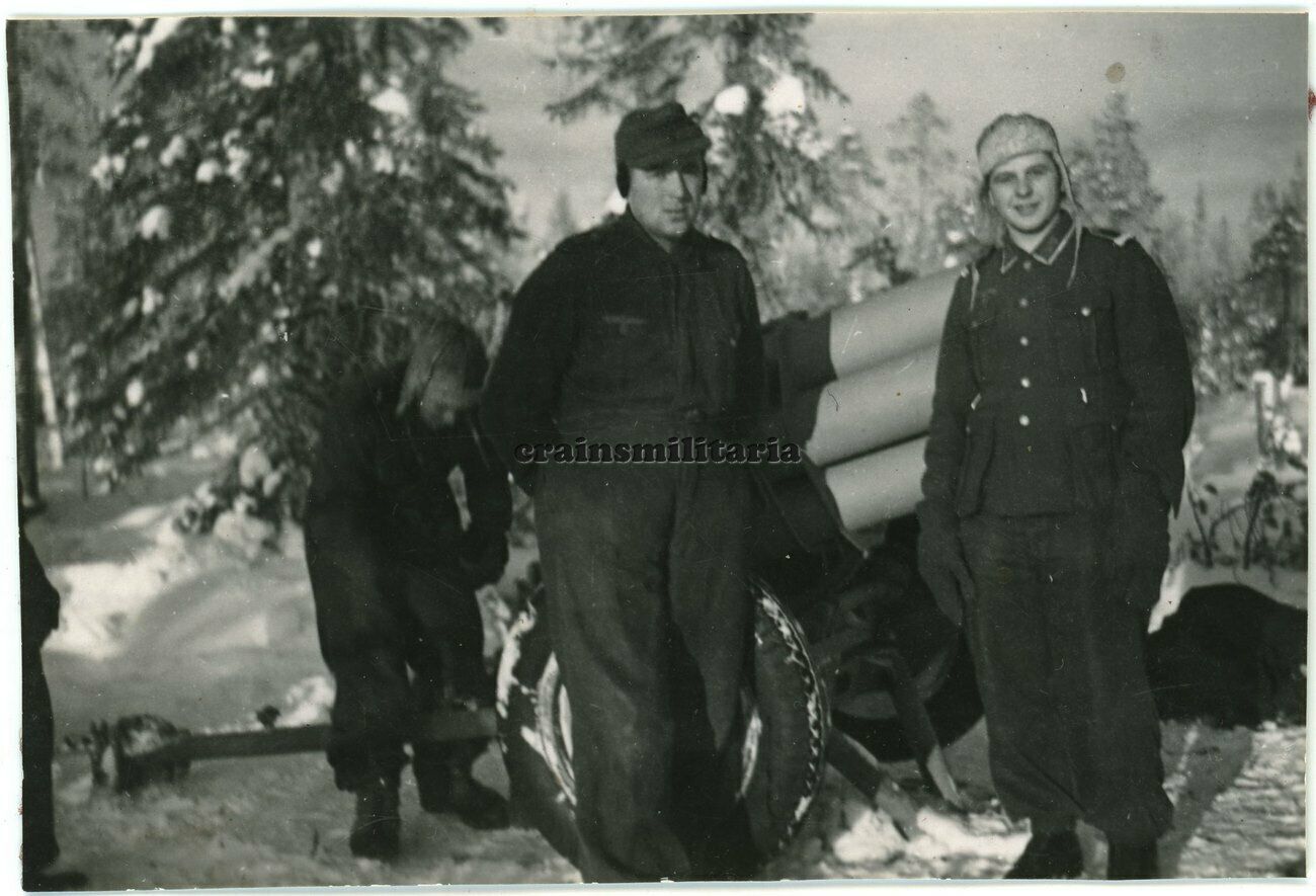 Orig. Foto Gebirgsjäger 21 cm Nebelwerfer 42 Geschütz in Finnland 1943.