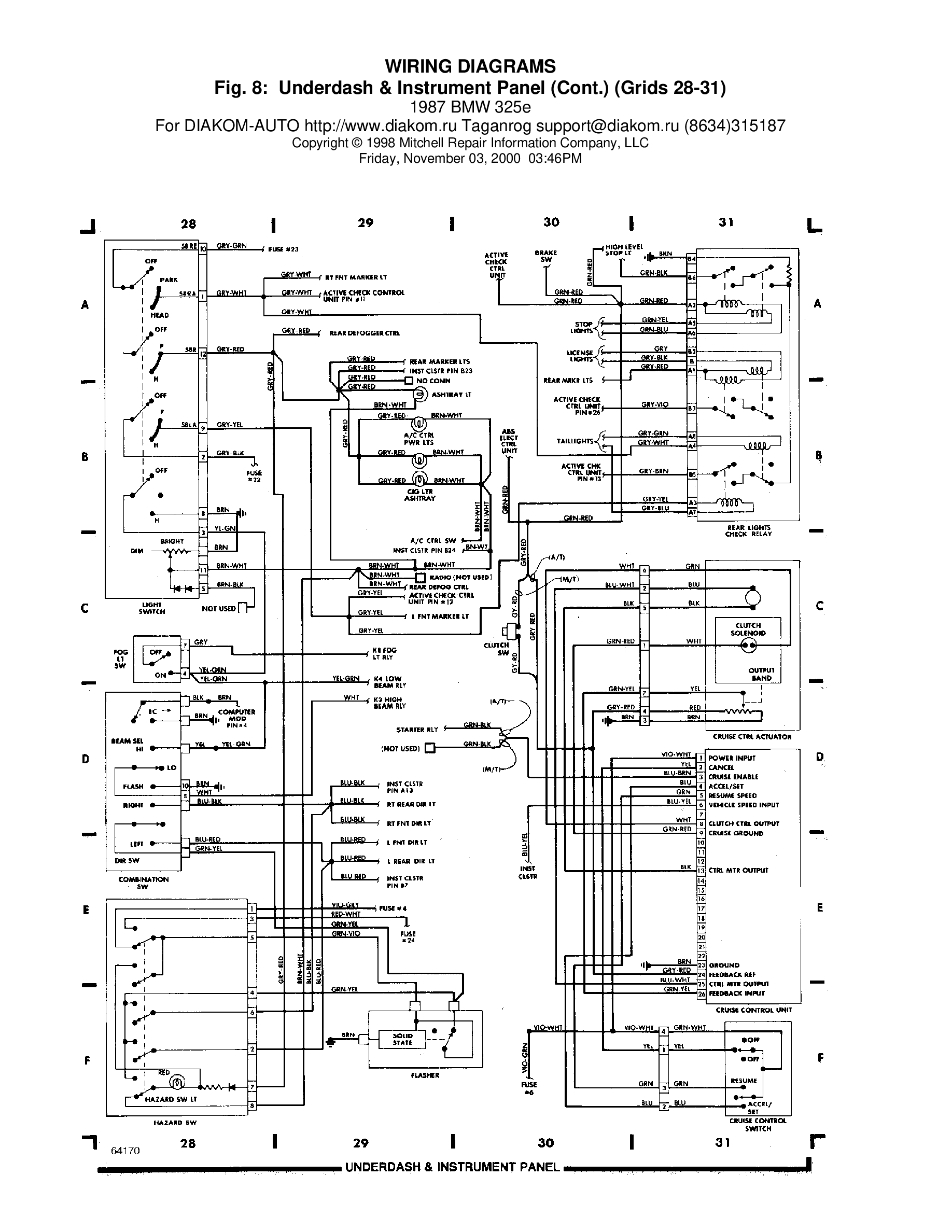 BMW 325e 1987 Wiring Diagrams # 8 - Underdash and Instrument Panel grids 28 -31