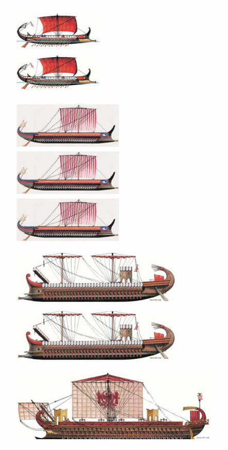 Evolución desde la pentecóntera griega al quinquerreme romano