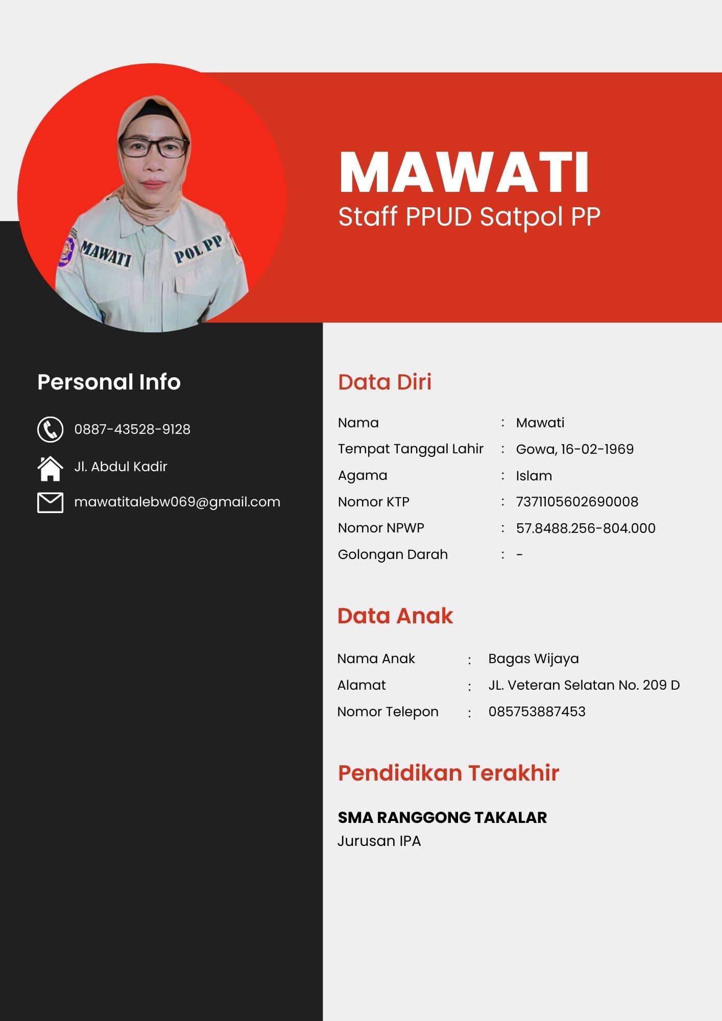 Biodata ID Card Kak Mawa
