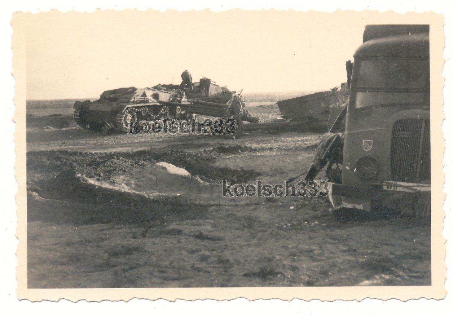 Foto Sturmgeschütz Panzer mit Kettenschaden ! Renault Beute LKW