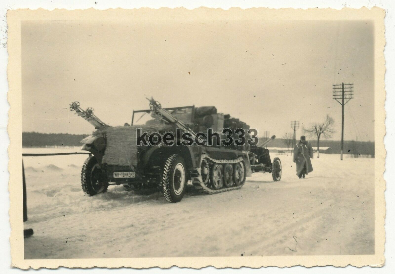 Foto Panzer Halbkette mit Ski auf Kotflügeln und PaK im Schlepp im Winter ... !
