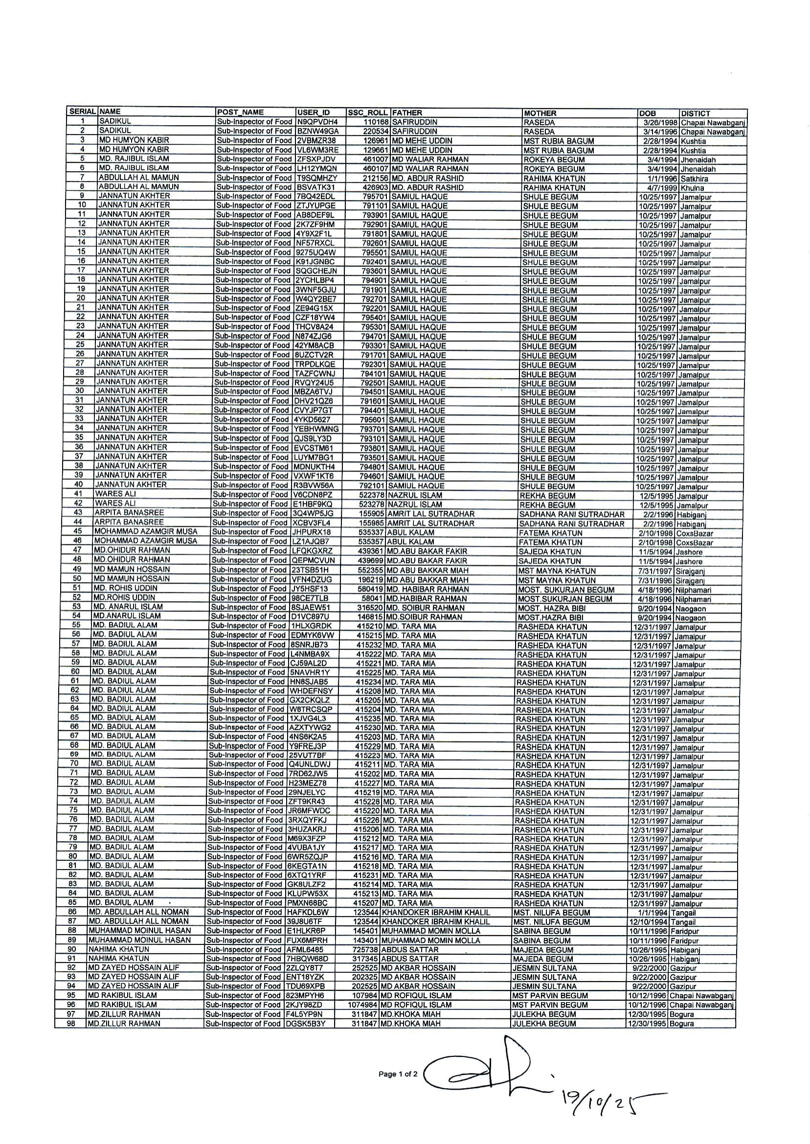 DGFood Sub-Inspector of Food Exam Void Candidate List PDF-3