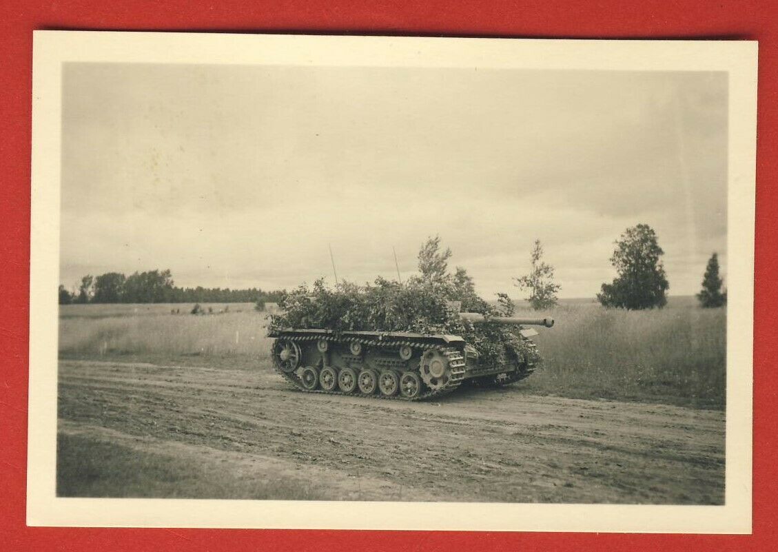 Fotos Panzer Sturmgeschütz mit Tarnung und Fahne Rußland Feldzug2