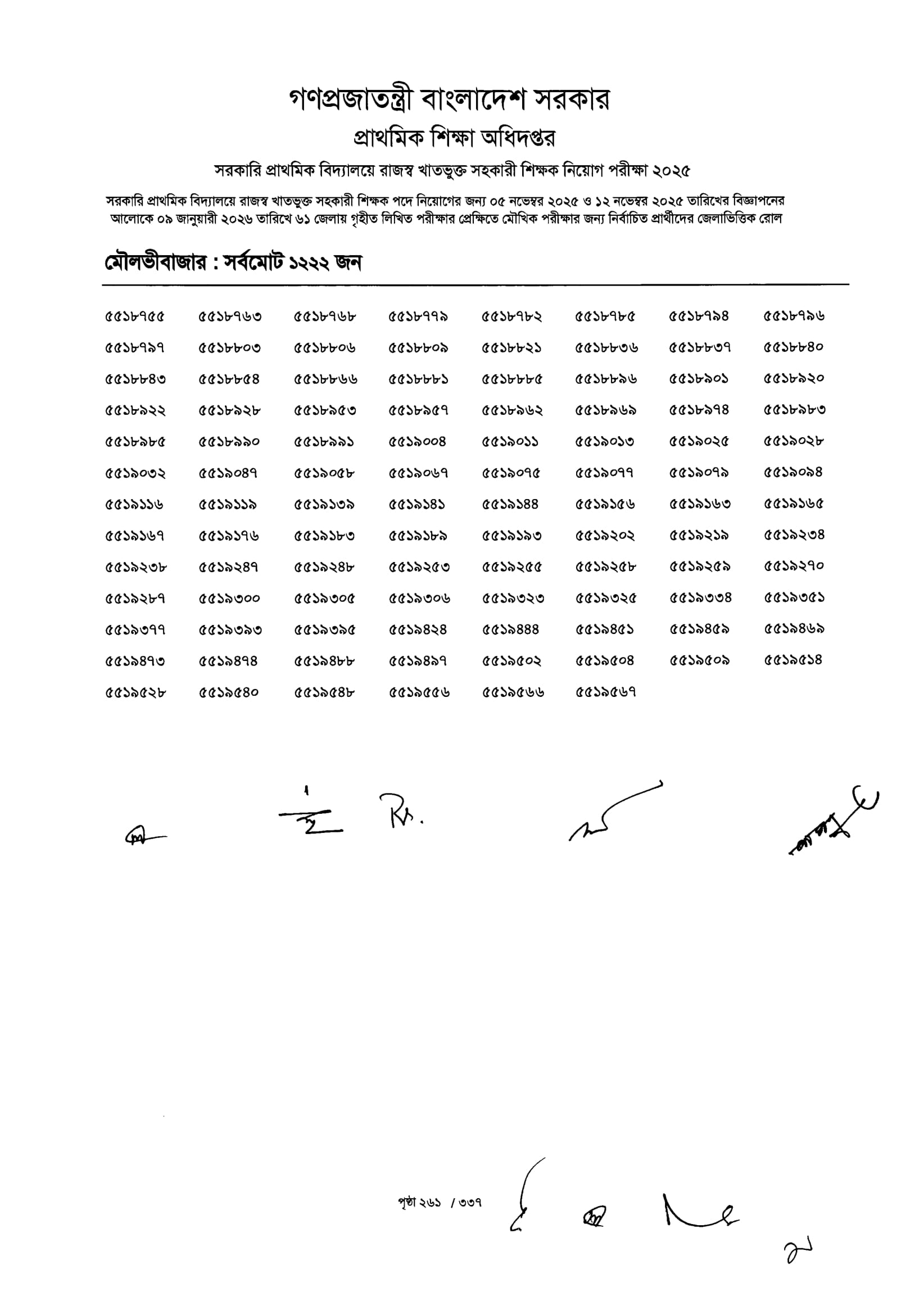 Primary MCQ Exam Result 2026 PDF 263