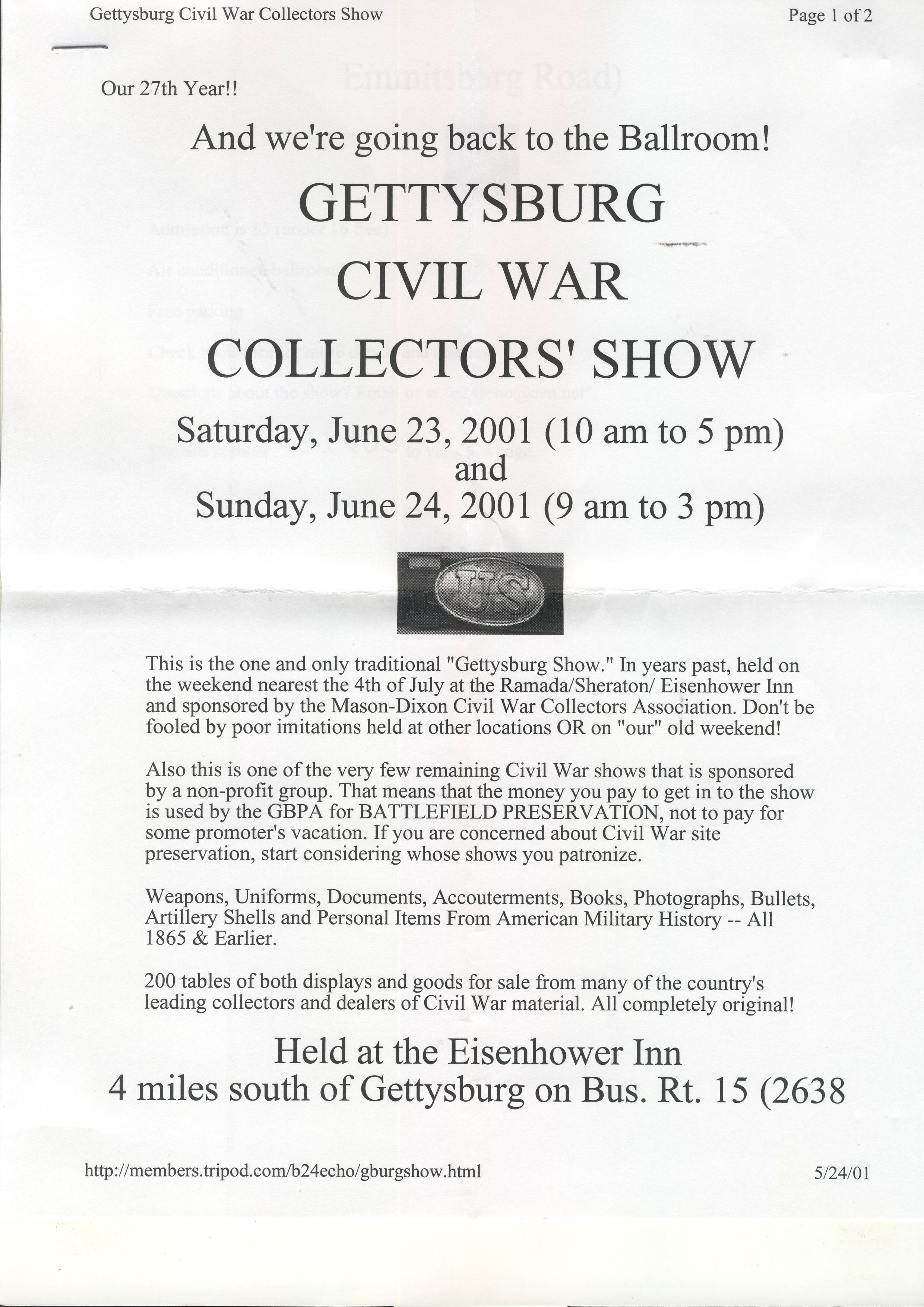 Gettysburg Civil War Collector's Show June 23 and 24th 2001