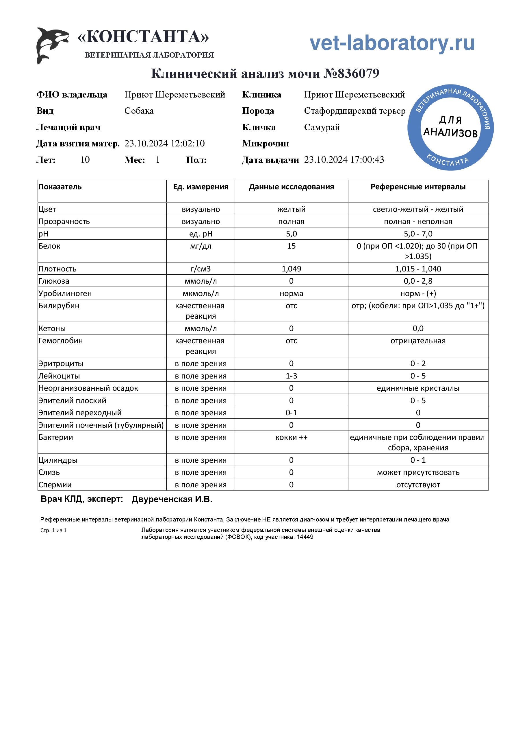 Клинический анализ мочи (836079)