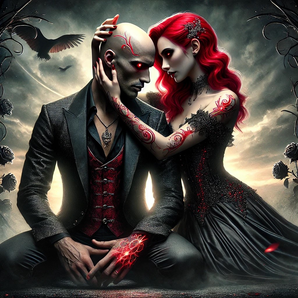 DALL·E 2024-12-23 07.37.04 - A touching and intimate scene featuring Smirks and Haze in a gothic, ro