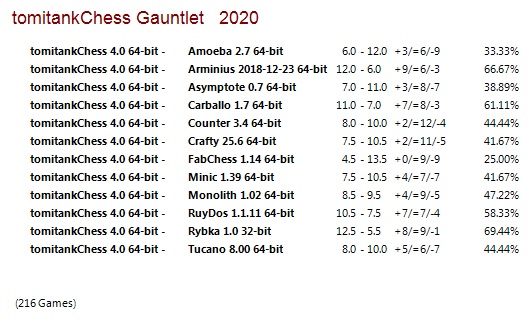 tomitankChess 4.0 64-bit Gauntlet